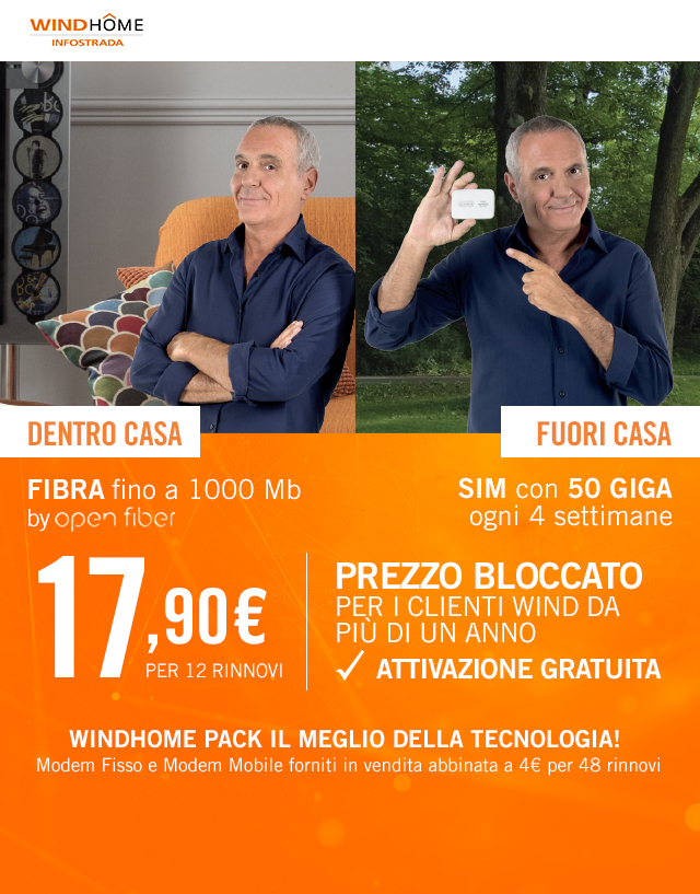 Ai sensi dall'art. 13 D.Lgs. 196/03, ti informiamo che i dati personali sono trattati per finalità strumentali all'erogazione del Servizio richiesto. Per l'esercizio dei diritti ai sensi dell'art. 7 D.Lgs. 196/03, si potrà rivolgere richiesta scritta a Wind Tre S.p.A. con Socio Unico - Ufficio Privacy- Via Leonardo da Vinci, 1 20090 – Trezzano S/N (MI) Italia.